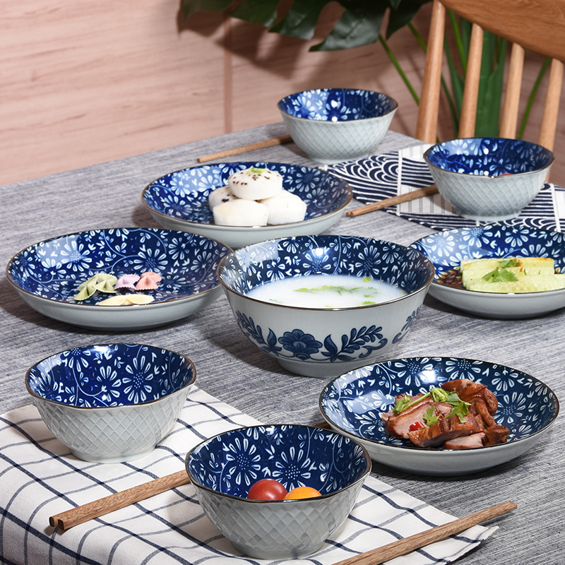 Household 4-person tableware set Ceramic bowls and dishes Bowls and dishes combination Japanese bowls and chopsticks Jingdezhen blue and white porcelain plates and bowls