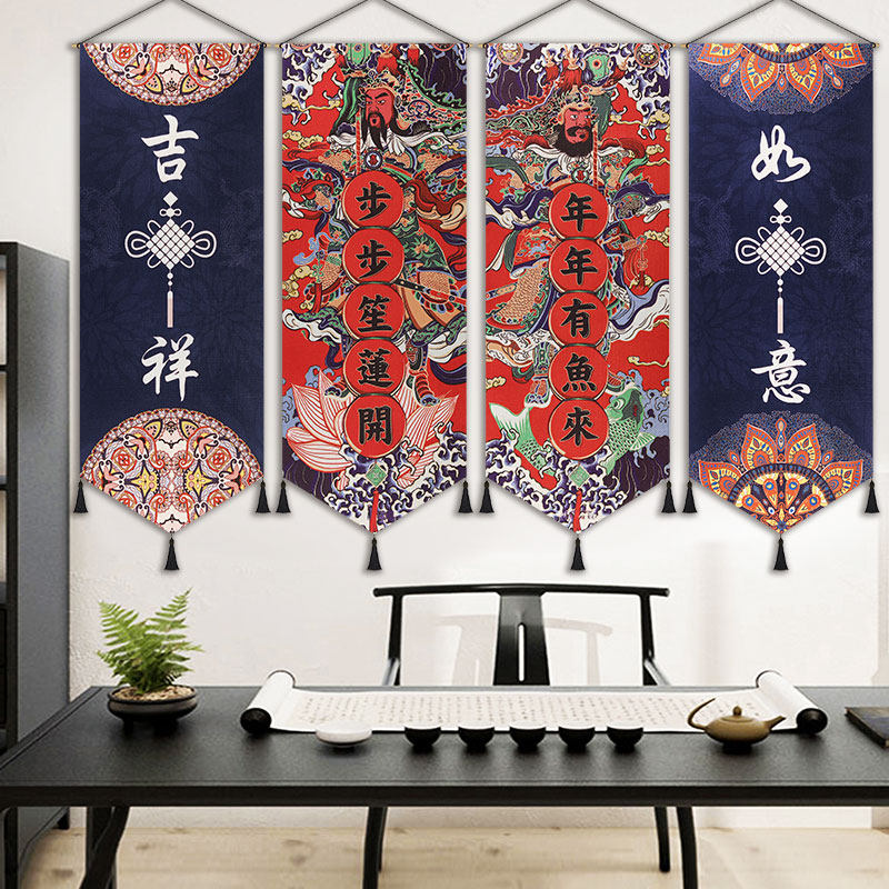 Chinese-style homestay wall cloth art painting ethnic style decorative cloth painter with living room wall painting hanging cloth painting hanging flag customization