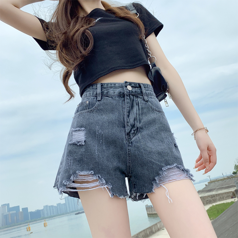 Denim shorts Women summer loose 2021 New High waist thin spicy girl wide legs hot pants students wear thin holes