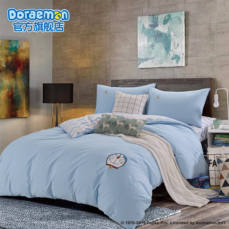 Aifilm authorization Doraemon A dream full cotton four sets bed linen quilt cover Three pieces Cartoon Embroidered Bed bedding