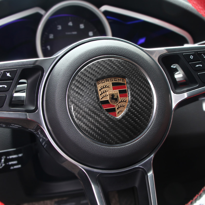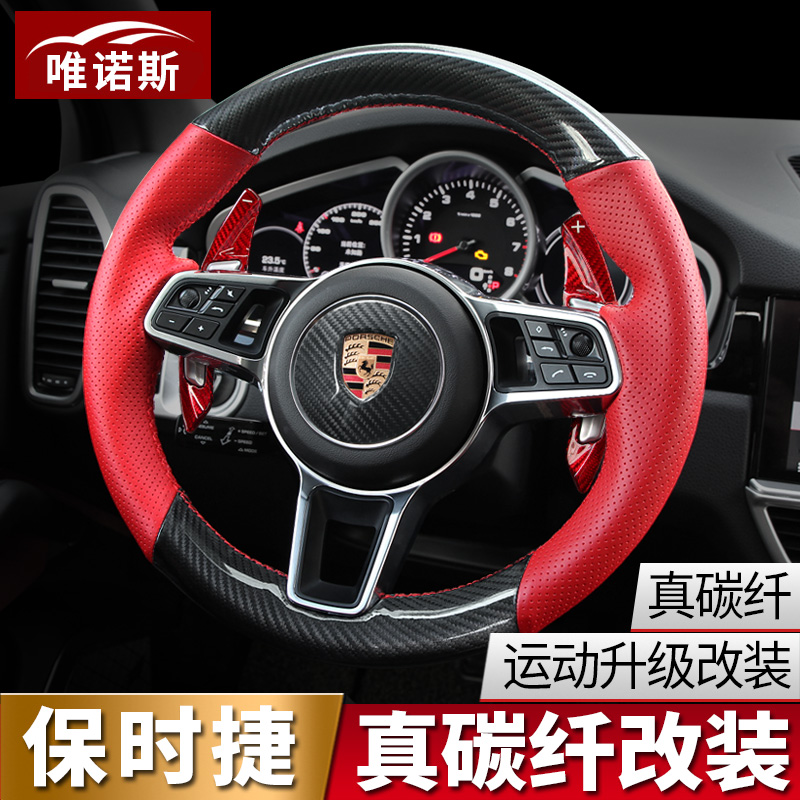 Steering wheel decorated with real carbon fiber (Porsche whole system General) Porsche steering wheel sleeve red parquet carbon slim light side Porsche steering wheel cover black parquet ciliary bright face