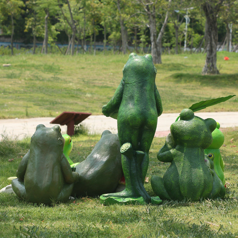 Simulation cartoon frog fiberglass ornament sports sculpture outdoor pond pastoral kindergarten courtyard garden decoration