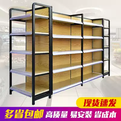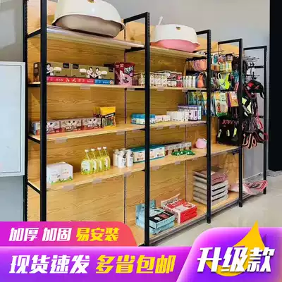 Four-pillar wood grain supermarket shelf display stand single-sided double-sided multi-layer shelf convenience store cosmetics snack shelf