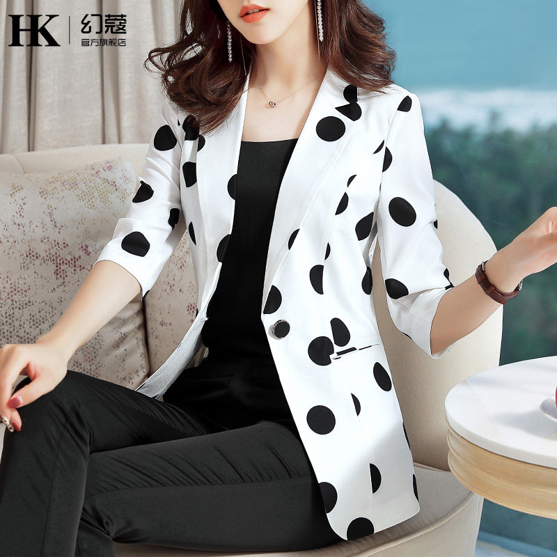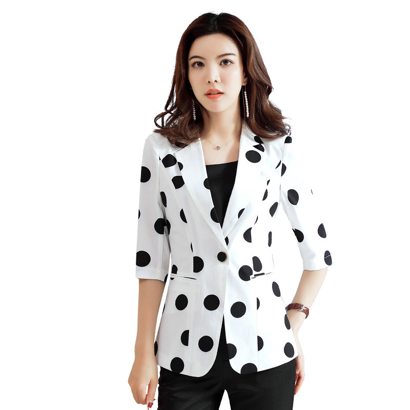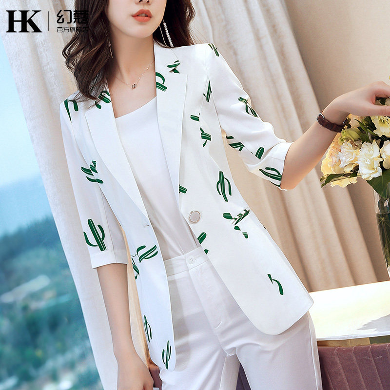 Suite coat female summer thin snow printing professional wear goddess white leisure in sleeve suit