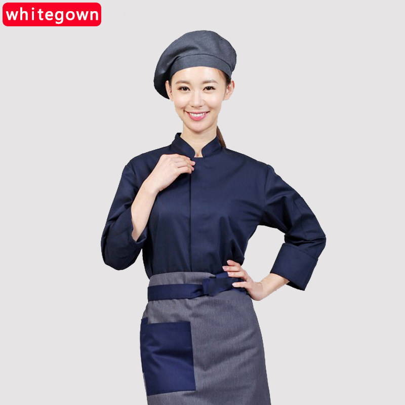 Chef clothes Spring, summer and autumn clothes Long-sleeved kitchen clothing men and women's Western restaurants and Korean restaurants back chef chef overalls