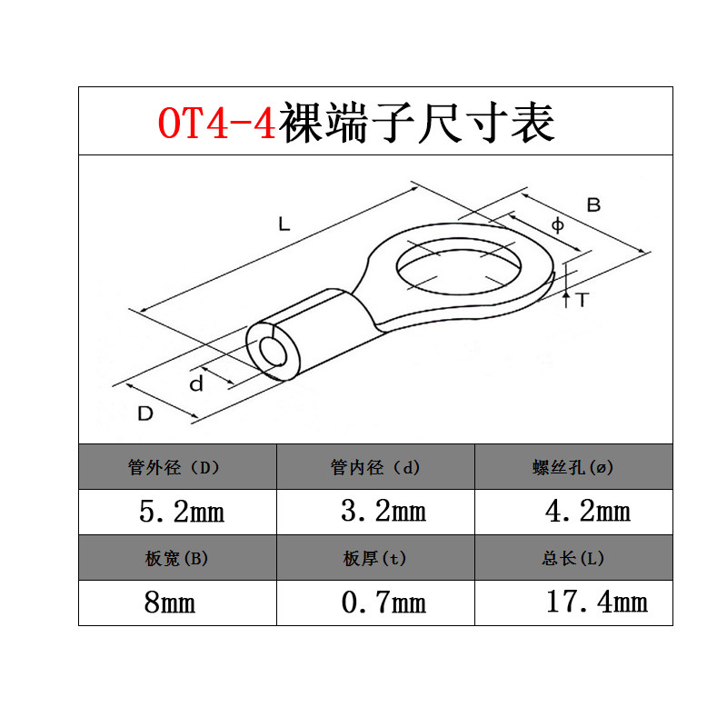OT4-4 5 6 8 10 12 Cold pressed wiring terminals O-round naked end head line nose copper wire ear 4 squared