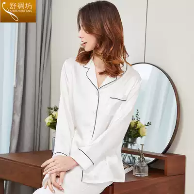 Shu Silk Square heavy silk pajamas women solid color long sleeve trousers comfortable silkworm silk home clothing set spring and autumn