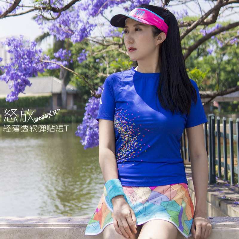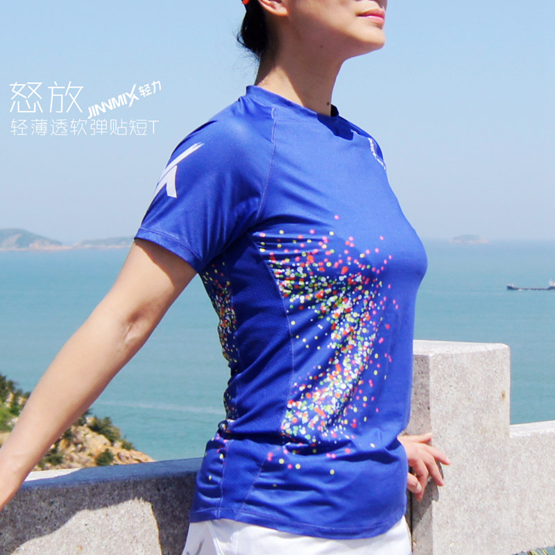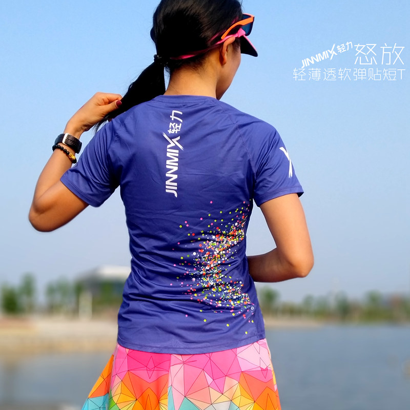 Light force and anger light and thin through soft quick dry breathable ultralight round collar T short sleeve pattern running Sport luminous female