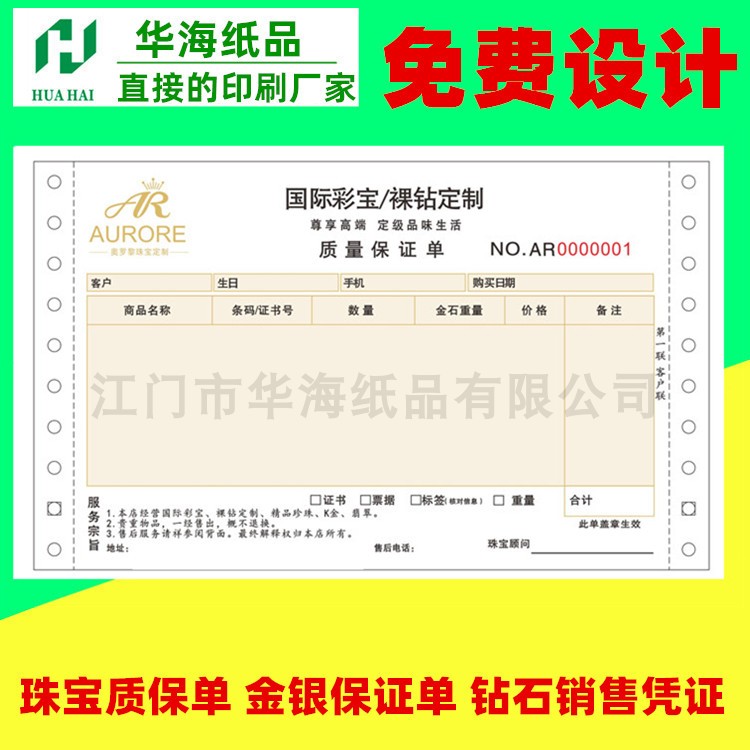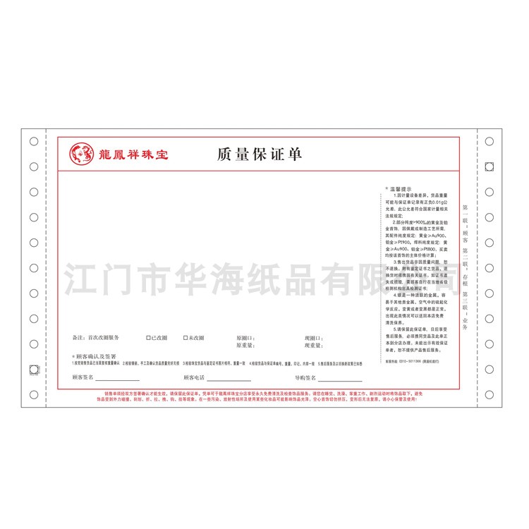 Gold jewelry jewelry quality assurance printing press receipt of jewelry sales single gold store maintenance single