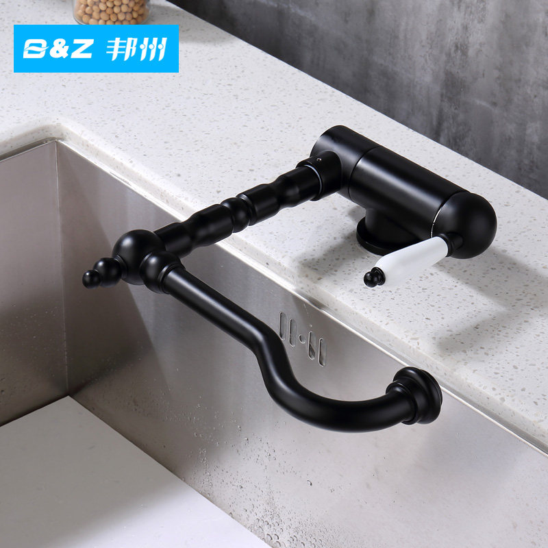 Antique European-style kitchen wash basin hot and cold out of the faucet open window all copper paint black folding faucet