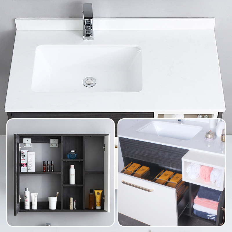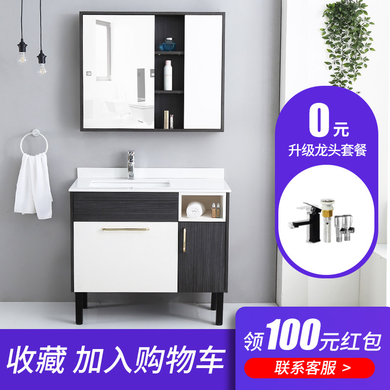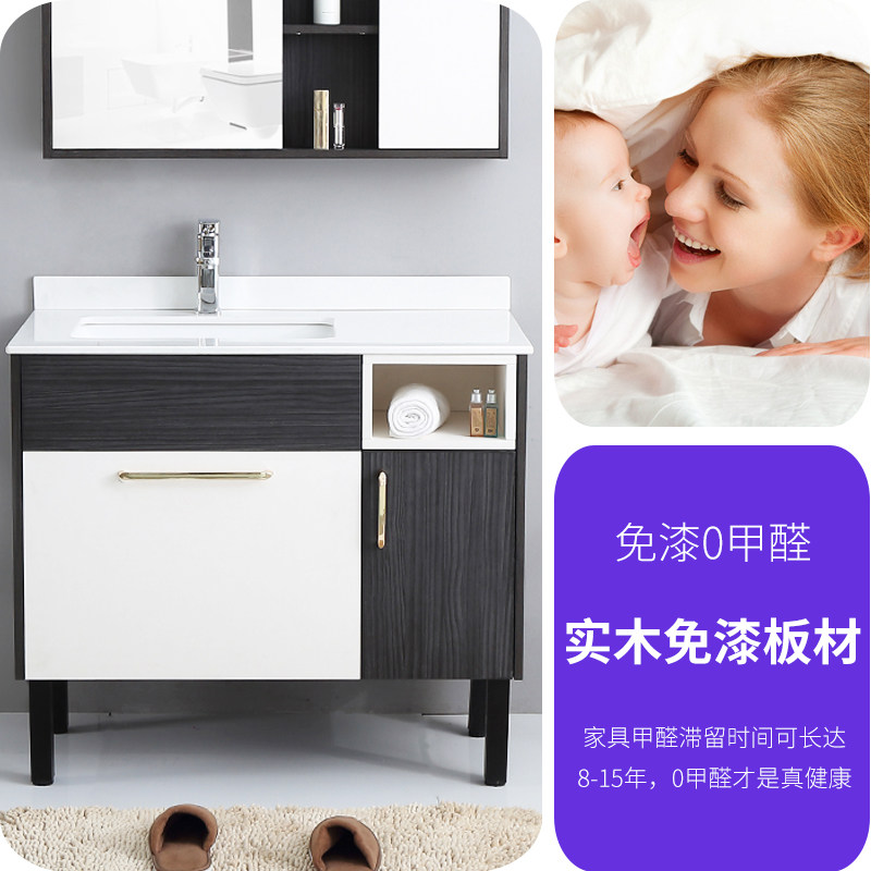 Bathroom cabinet combination Floor-standing Nordic paint-free solid wood waterproof and moisture-proof light luxury modern bathroom face wash basin cabinet