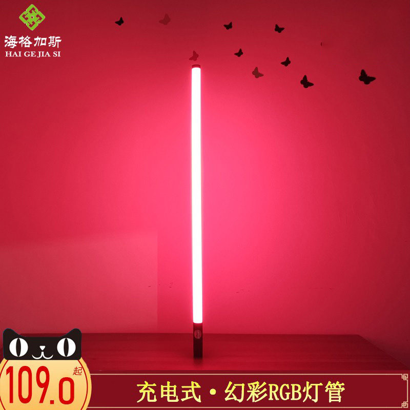 Charging LED tube discoloration colorful gradient handheld color mobile live broadcast wireless magic color RGB horse racing breath