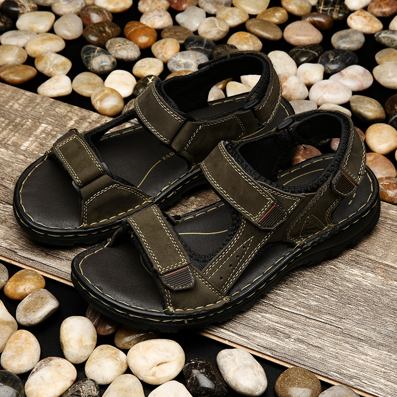 Sandals men's leather 2022 new summer breathable men's shoes soft bottom leather casual shoes sports beach shoes waterproof