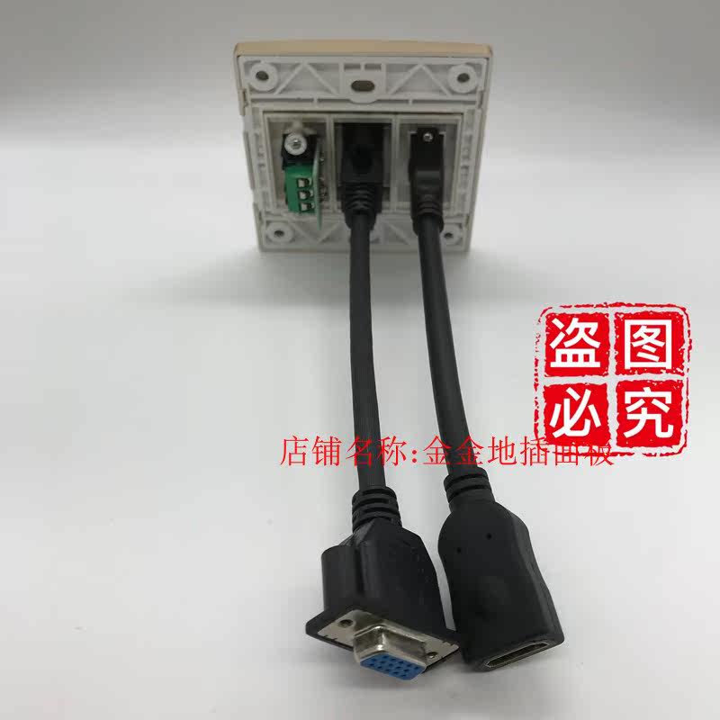Type 86 champagne golden hdmi vga audio panel socket HDMI VGA with wire straight insert lotus free of welding