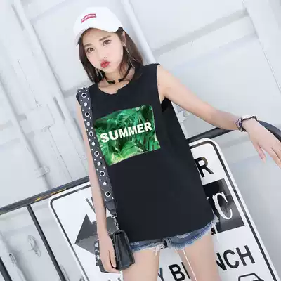 Cotton style summer new student harbor wind sleeveless T-shirt women bf wind loose letter printing vest top Y