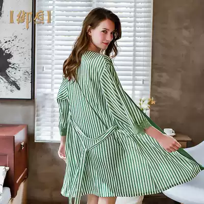 Yufu heavy mulberry silk pajamas female summer mulberry silk pajamas long sleeve nightgown two-piece Mulberry Silk Robe Women