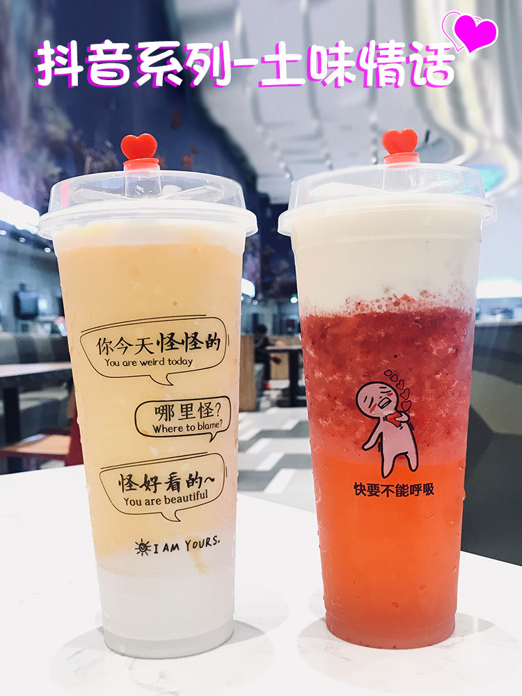 90 Earthy Love Talk Disposable Plastic Milk Tea Cup Injection Cup Net Red Bobo Tea Cold Drink Takeaway 700ml