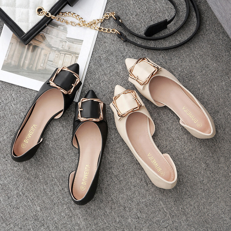 Hong Kong leather flat shoes women's pointed toe 2022 spring new all-match net red evening shoes shallow mouth four seasons scoop shoes