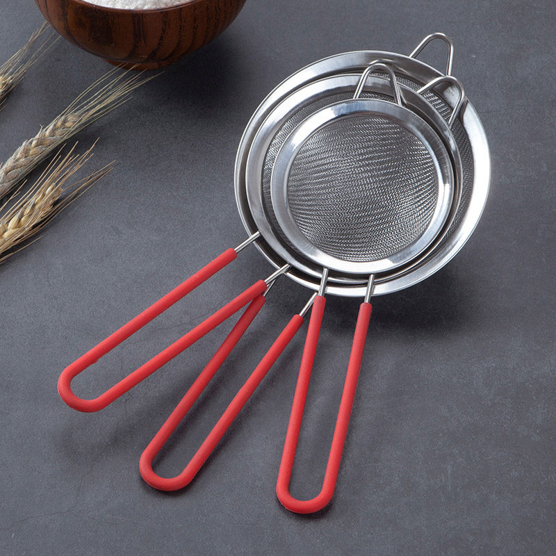 15cm flour sieve (60 mesh screen) silica gel handle thickened (8 5cm) 30 mesh screen silicone handle thickened (12cm) 30 mesh screen