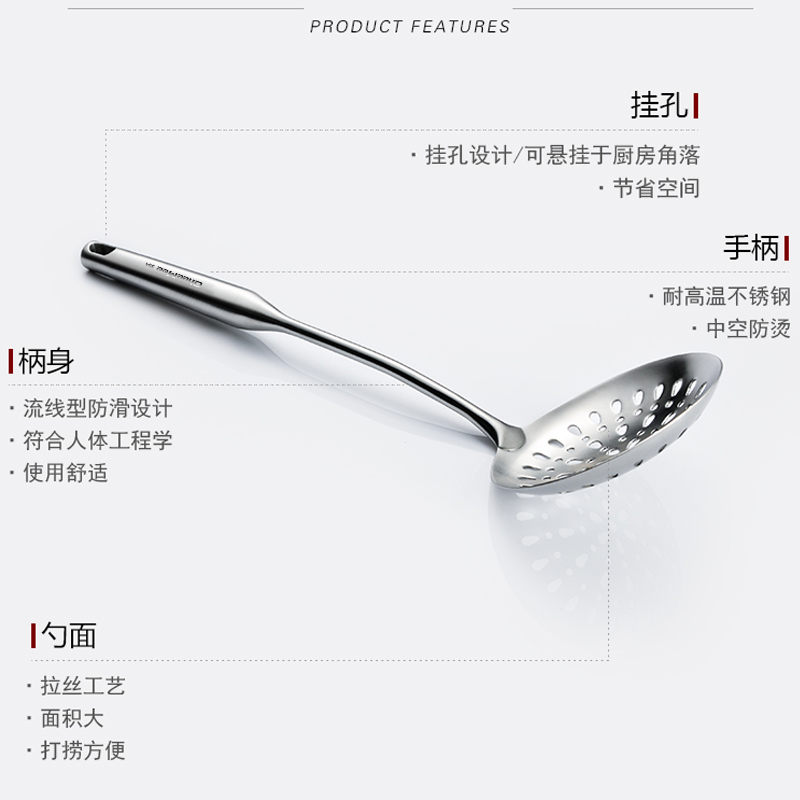 Qimei 304 stainless steel colander filter Large Malatang skimmer long handle drain net oil filter Kitchen noodle spoon