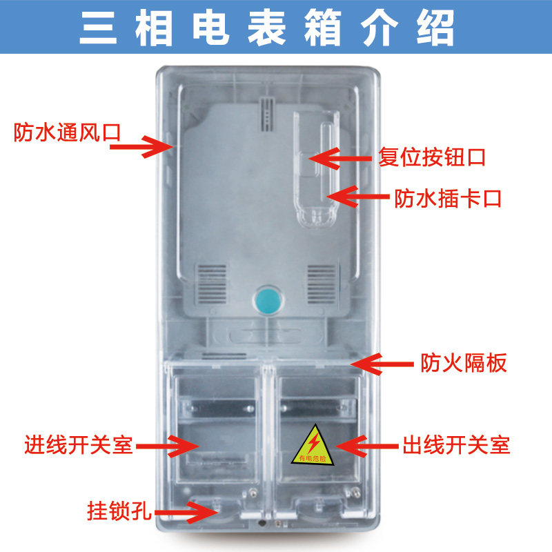 Thickened single-phase three-phase one household electric meter box single household prepaid transparent plastic waterproof flame retardant electric energy meter box