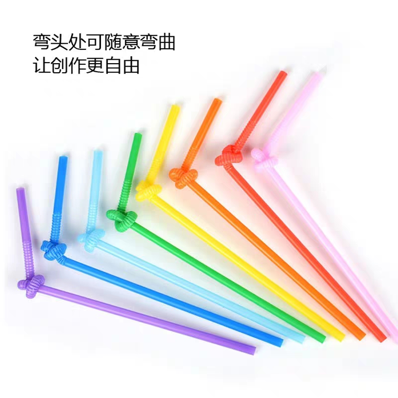 Bendable Color Straws Art Kindergarten Creative Adhesive Painting Blow Drawn Straw Children Handwoven Making Material