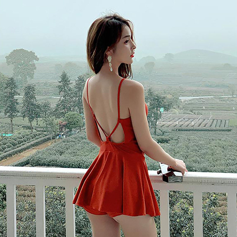 2021 new one-piece fairy fan conservative cover belly slim sexy large size Korean INS style swimsuit