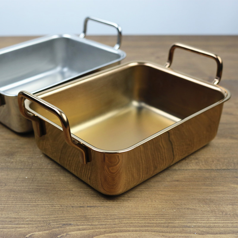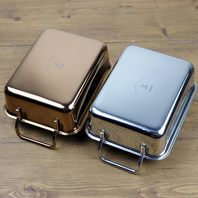 Small octopus stainless steel 304 square plate rectangular tray dumpling plate meal fried rice plate plate plate with handle
