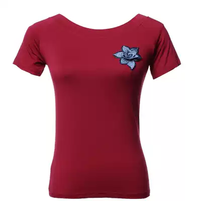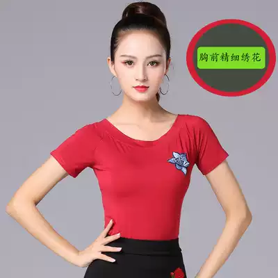Latin dance clothing female adult top human practice suit embroidered round neck social dance new national standard modern dance short sleeve
