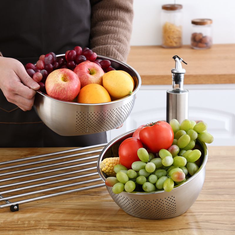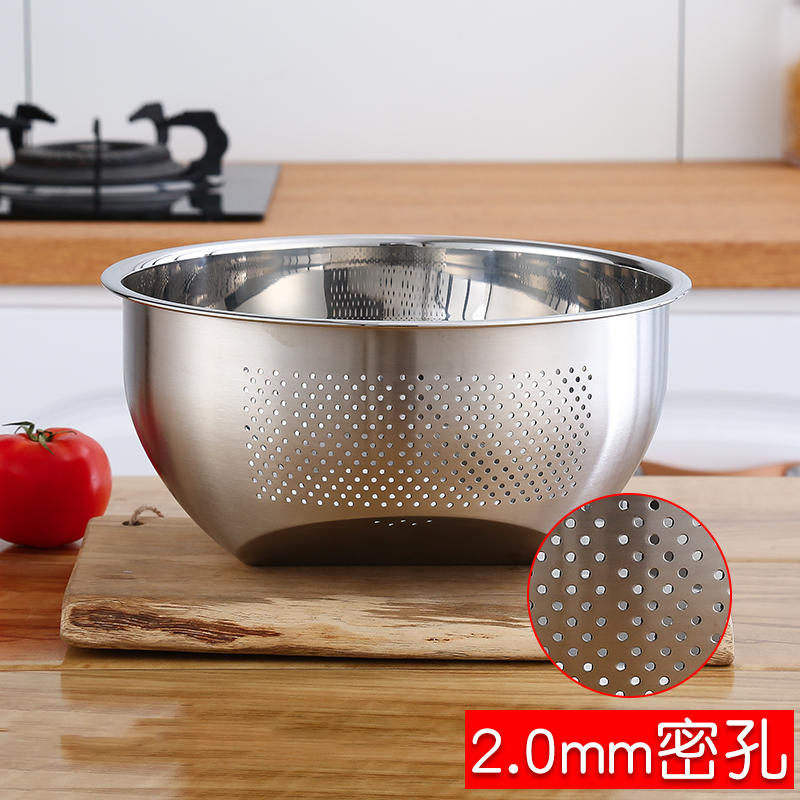 Stainless steel rice washing basin 304 large washing rice washing basin home thickened small hole drain basket round vegetable washing basin