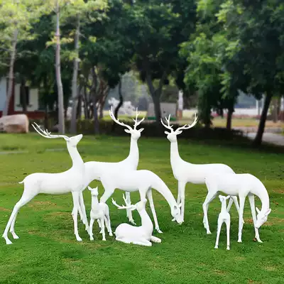 Simulated sika deer ornaments glass fiber landscape animal white deer sculpture park wide mall courtyard scenic decoration
