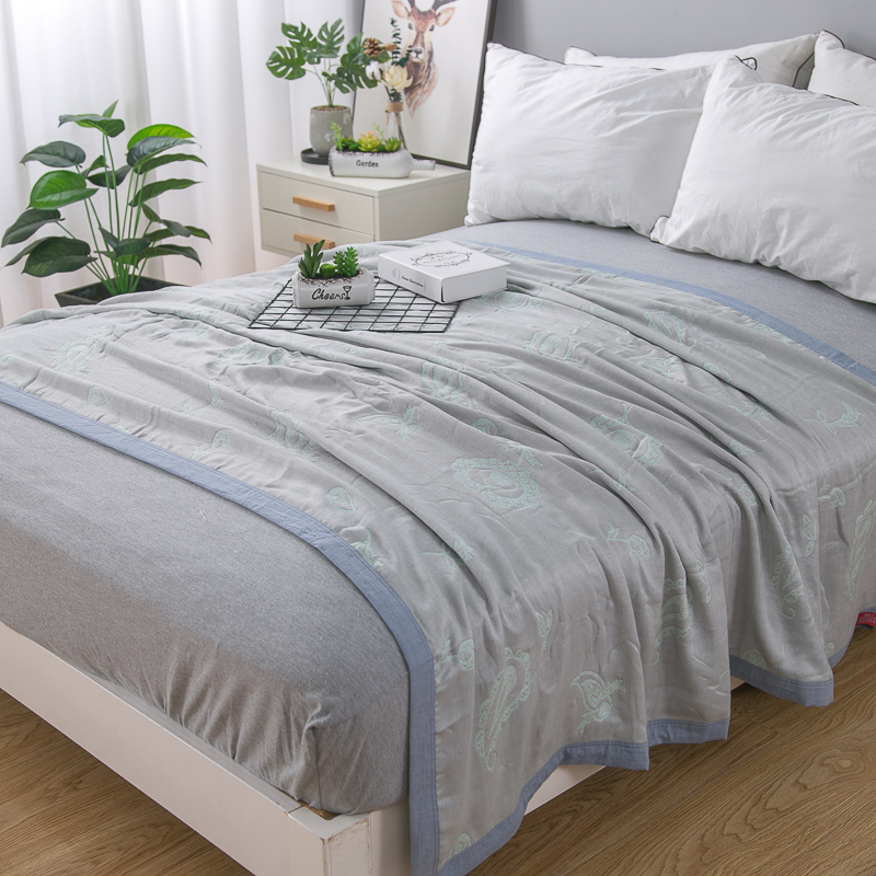 Gray sole green cashew fruit 4 layers of bamboo fiber blanket green tree leaves 4 layers of bamboo fiber blanket green flour blanket blanket flour leaves 4 layers of bamboo fiber blanket flour blanket gray blue