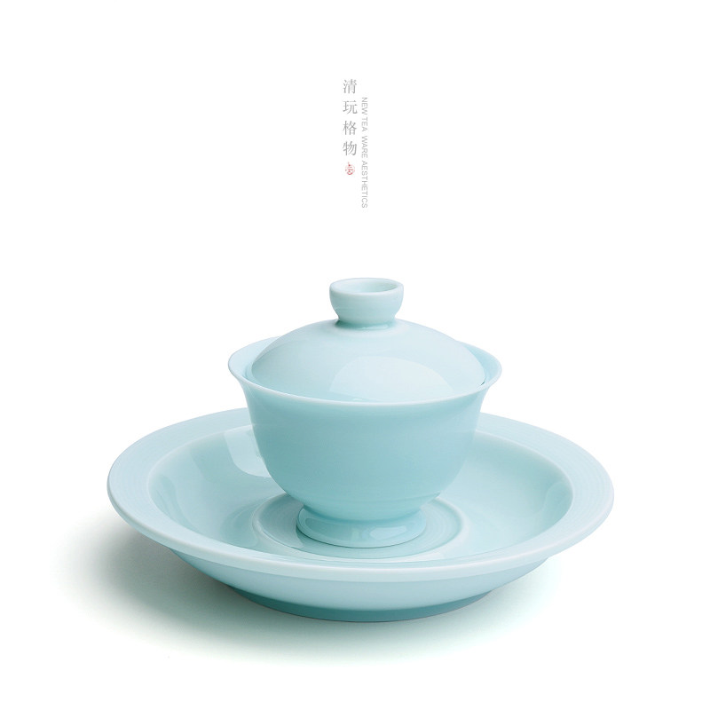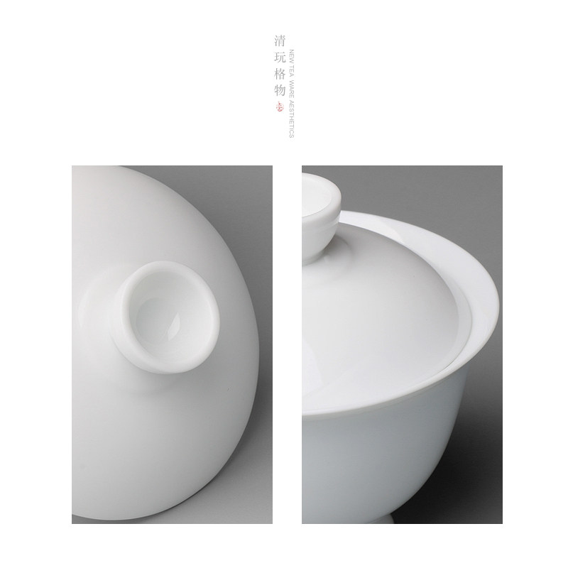 Defied High White Porcelain Kung Fu Tea With Three Talents Cover Bowl LOGO Gift Custom Green Porcelain Pot Acceptance Brief About Home Tea Maker