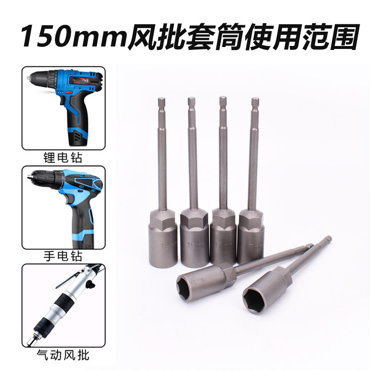 Pneumatic screwdriver sleeve head deepening swivel tail wire sleeve outer hexagon lengthened 150mm electric power drill pneumatically screwdriver head 8mm10mm
