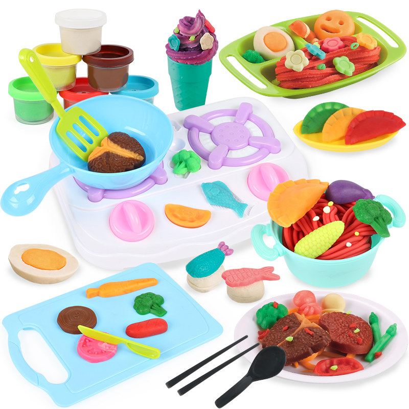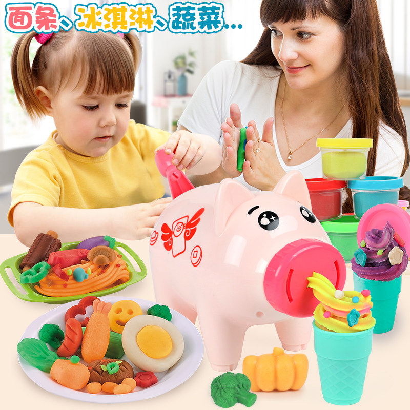 Small pig noodles machine with 12 color mud stove table color mud suit one 19 pieces of small pig noodle machine 12 mud stove 19 pieces with 6 colorful powder noodles machine suit 5 color clay small chef powder noodle machine suit 10 color mud haircut