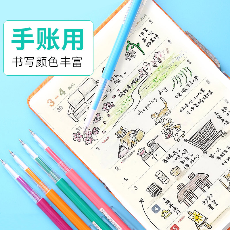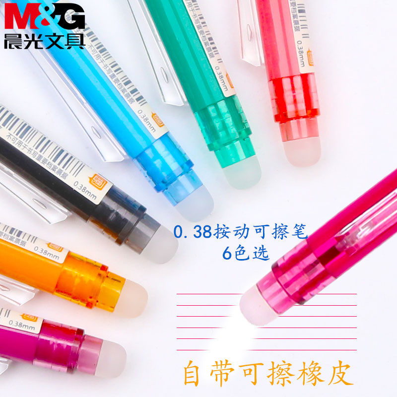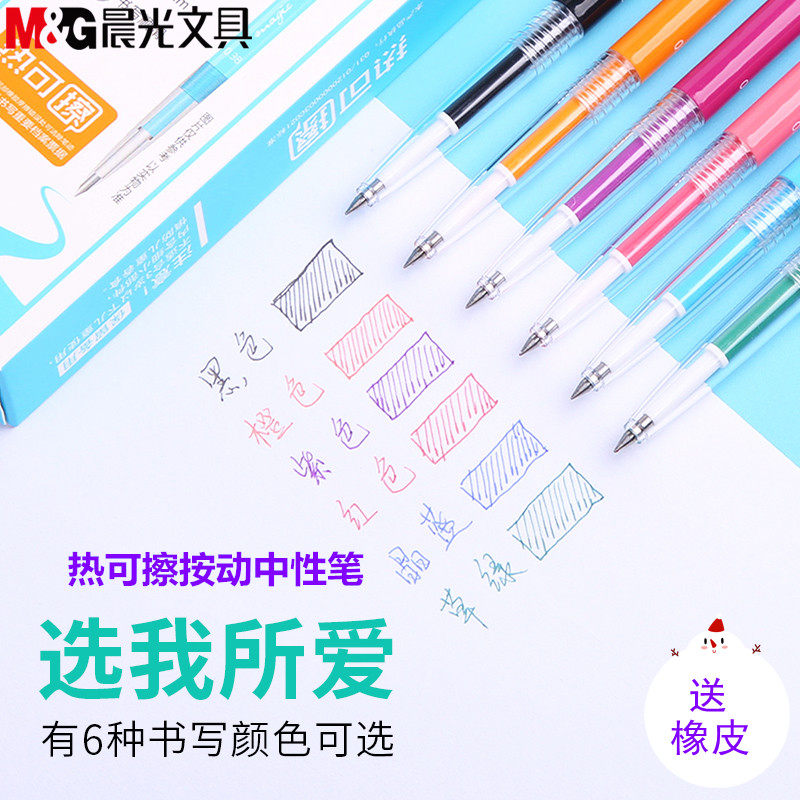 Chenguang H9501 gel pen hot erasable pen color hand account set 038 bullet primary school students with 6-color key mark number press black red crystal blue easy-to-rub pen cute candy color pen