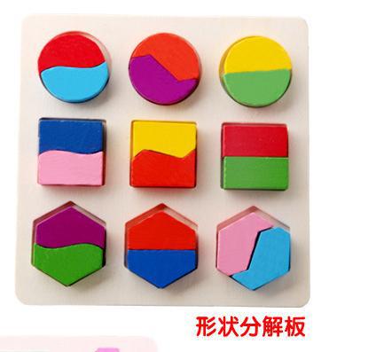 Wooden three-dimensional puzzle toy geometric shape board three color cognition board children's early education educational toys