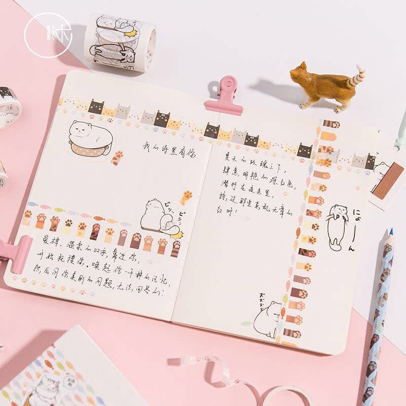 Body Wash and Paper Adhesive Tape Suit Cute Cat Hand Ledger Photo DIY Decorative Sticker 6 Volume of Supervalue