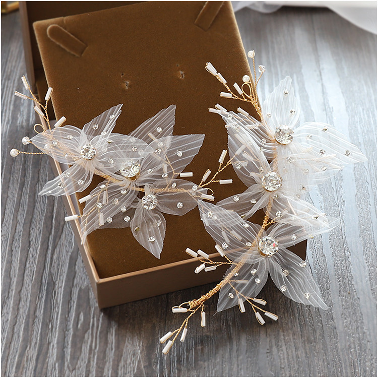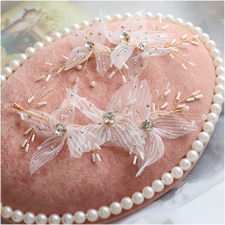 A pair of crystal juan yarn flowers Pair of fairy gypsophila headdress Xianmei soft yarn flower headdress White dragonfly headdress