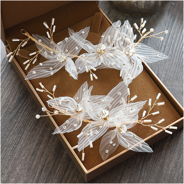 French bridal headwear fairy hair accessories Juansha crystal pair clip Korean flowers sweet and simple temperament wedding accessories