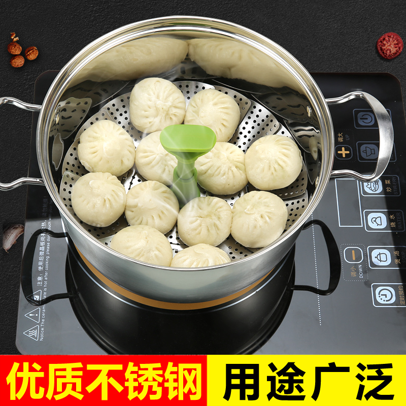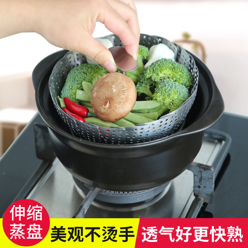 Stainless steam plate steamer steam plate with handle scalable lotus steam cage household steam steam plate mini-round bag steam frame