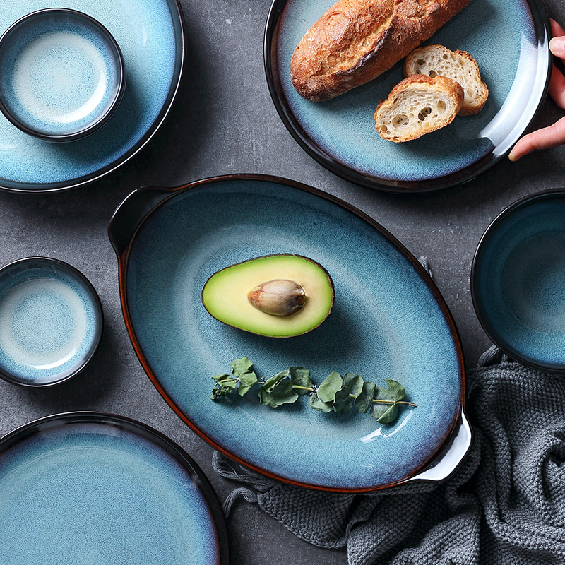 Kiln retro bowl Single noodle bowl Household large soup bowl Rice bowl 4 5 5 inch plate