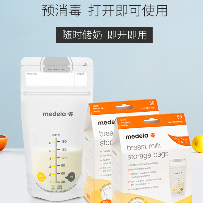 Medela milk storage bag 100 pieces of human milk Frozen breast milk preservation bag Storage bag Double zipper milk bag 180ml