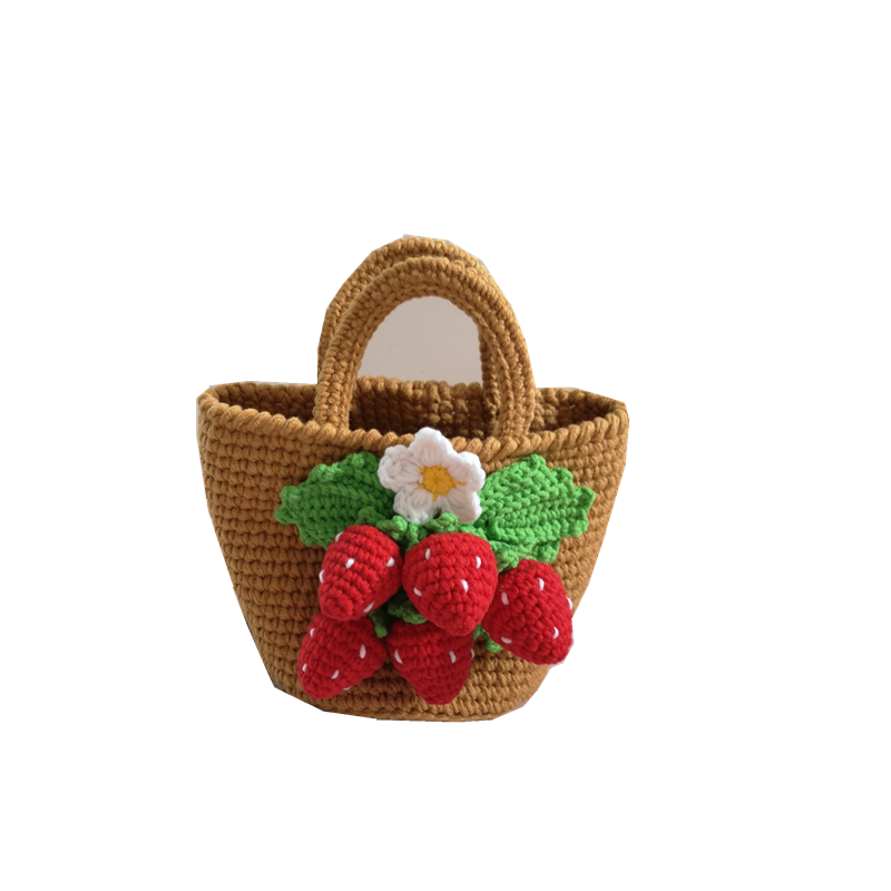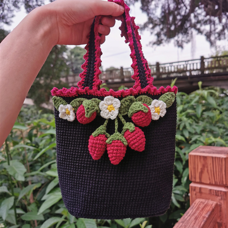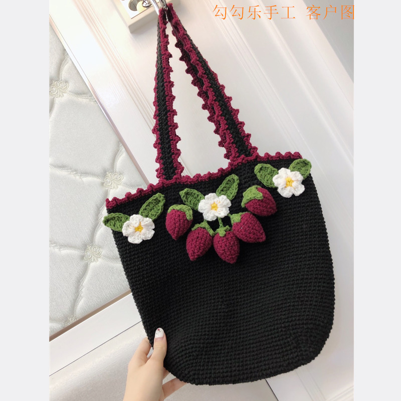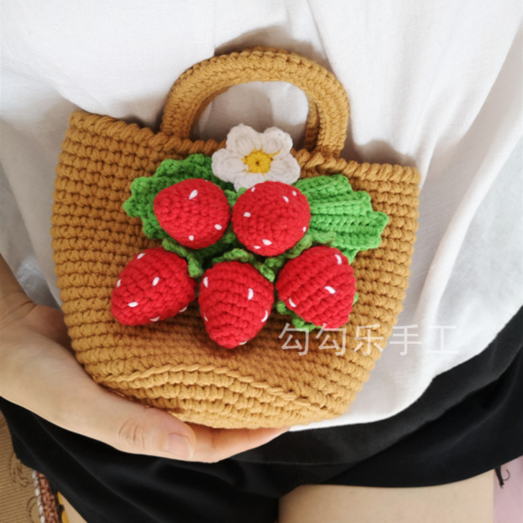 Handmade wool DIY hook knitting dolls children's gift strawberry handbag material bag video