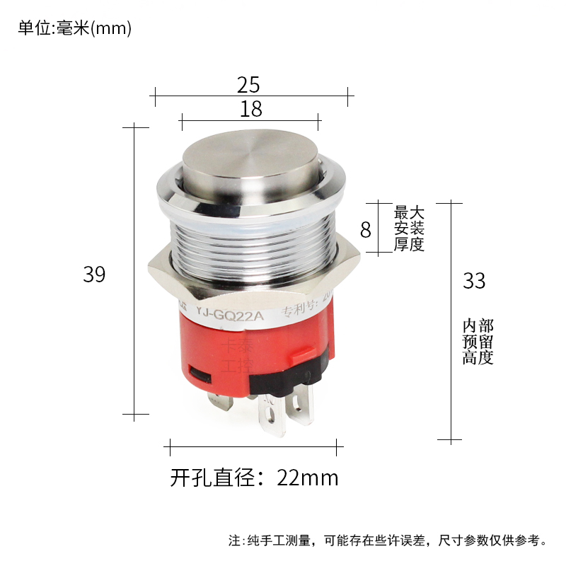 One good metal button start switch self-locking self-resetting high head 22mm high current waterproof GQ22AH-11 Z