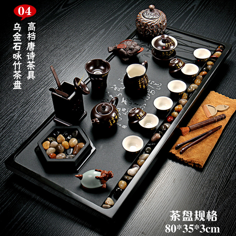 The whole piece of Wujinshi tea set household kung fu tea set set of simple stone tea table Tea Sea in-line