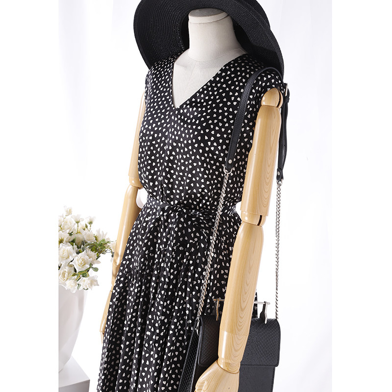 Positioning love print, satin-finished silk, bias-cut stitching, female V-neck loose belt, mid-length dress 67289