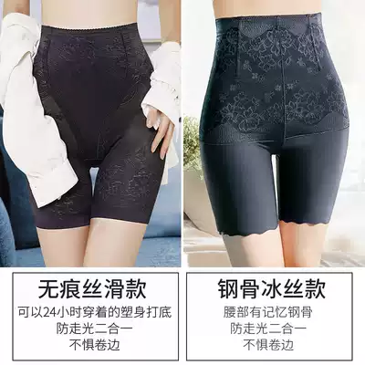 Ice silk belly pants safety pants women's anti-light non-curled high waist day summer thin meat color insurance bottoming underwear