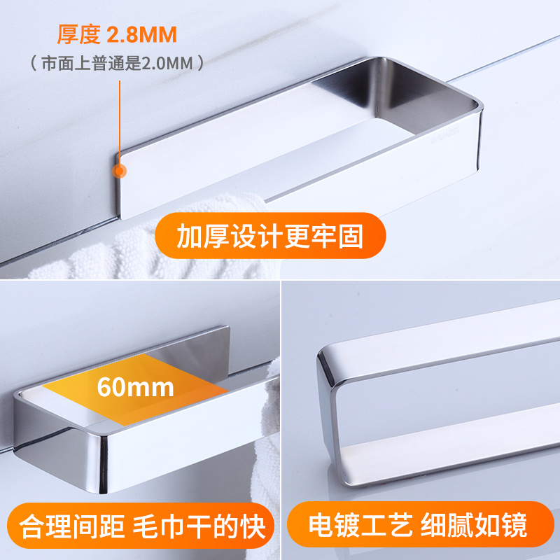 Towel rack free punch powder room stainless steel single rod hanging towel rod bathroom wall-mounted wall rack