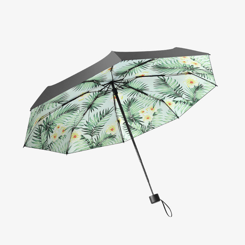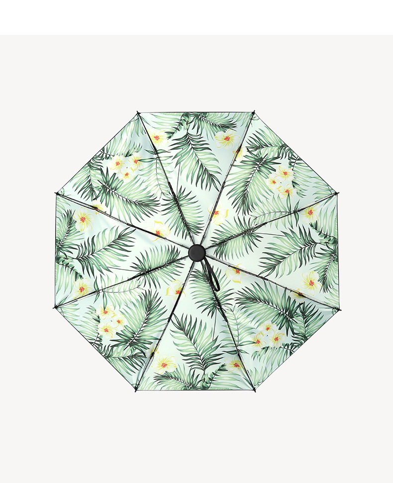 Custom Hand-painted Leaves Five Fold Umbrella Eight-bone Mini Pocket Beach Umbrella Female Sunscreen Beach Umbrella Sunny